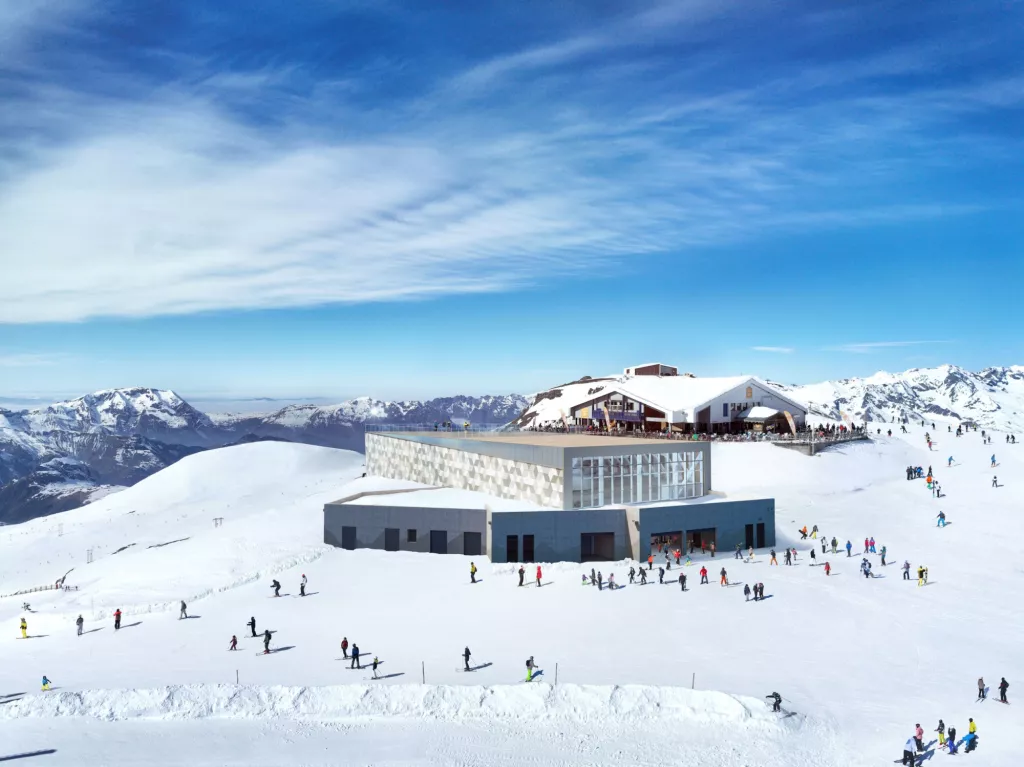 Ce chantier, ayant réuni plus de 450 ouvriers en pic d'activité, permettra au nouveau téléphérique de doubler le débit atteignant 3000 personnes/heure et divisera par deux le temps de parcours pour permettre aux skieurs d'atteindre le glacier en seulement 16 min.