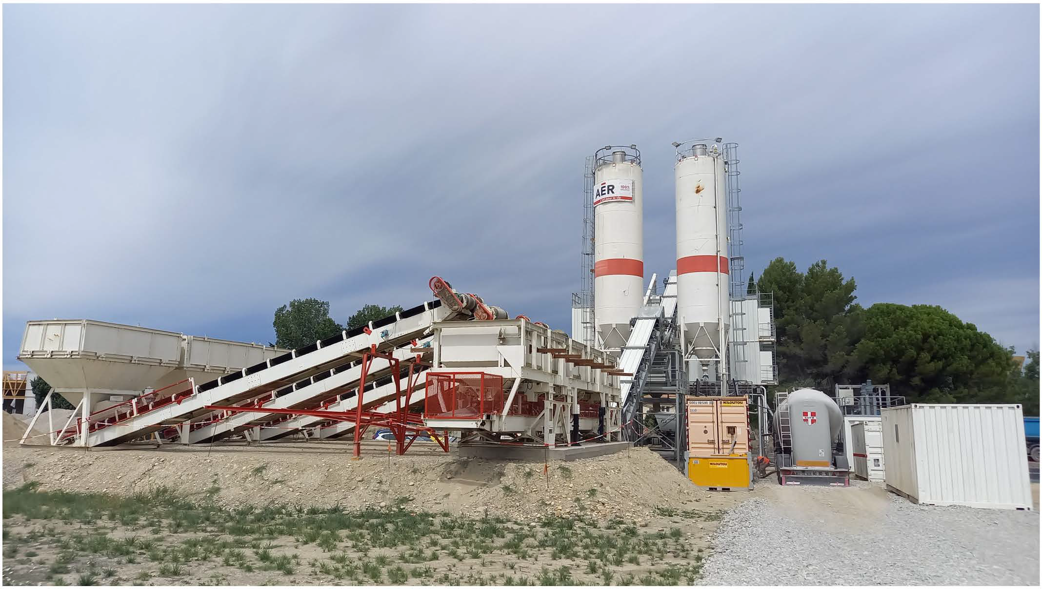 Alimentation de 2 centrales à béton, installées sur site pour l'occasion : une exploitée par EIFFAGE et la seconde par le régiment du génie de l'air (25e RGA).