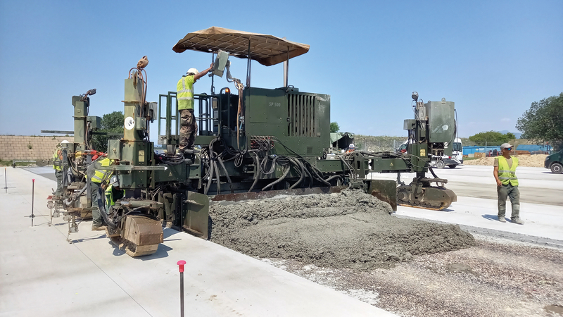 Pour reconstruire les surfaces planes, le matériau béton a été choisi pour sa résistance face aux contraintes statiques du Rafale, l'avion le plus agressif mécaniquement pour les pistes et parkings. En plus du liant routier nécessaire au traitement des sols avant application du béton, VICAT a intégré dans une offre globale la livraison du ciment et des granulats pour répondre à la demande du client.