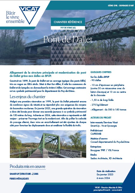 Allègement de la structure principale et modernisation du pont de Dallet par l’emploi de dalles en BFUP.