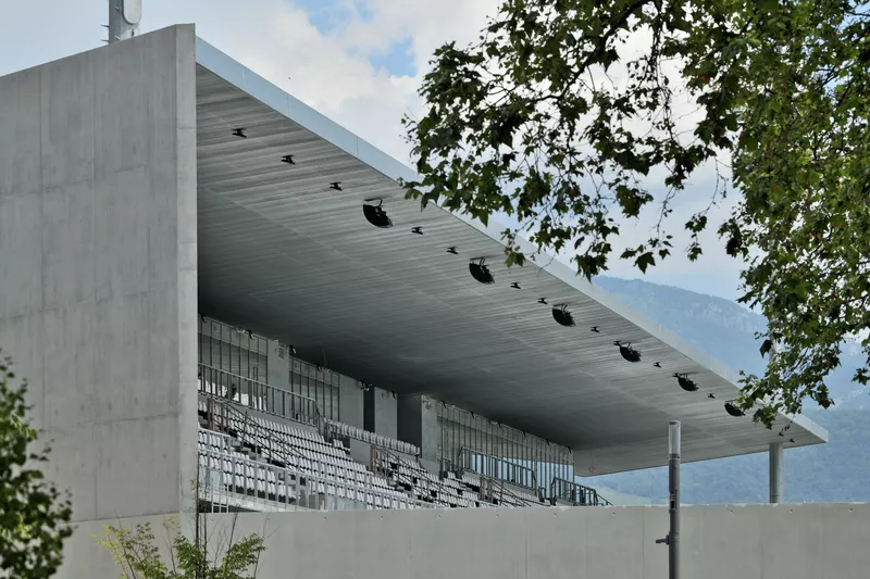 Pour accompagner ce chantier, Vicat a fourni 4 000 m³ de béton à faible impact carbone destinés au gros œuvre et aux tribunes. Ce béton, conçu à partir d’un ciment intégrant des matériaux naturels d’origine volcanique, a permis de réduire significativement les émissions de CO₂ tout en conservant les mêmes performances et une mise en œuvre identique à un béton classique. La proximité de la centrale Béton Vicat de La Motte-Servolex a également facilité l’approvisionnement du chantier, tout en limitant les déplacements de camions et les nuisances associées.