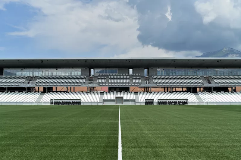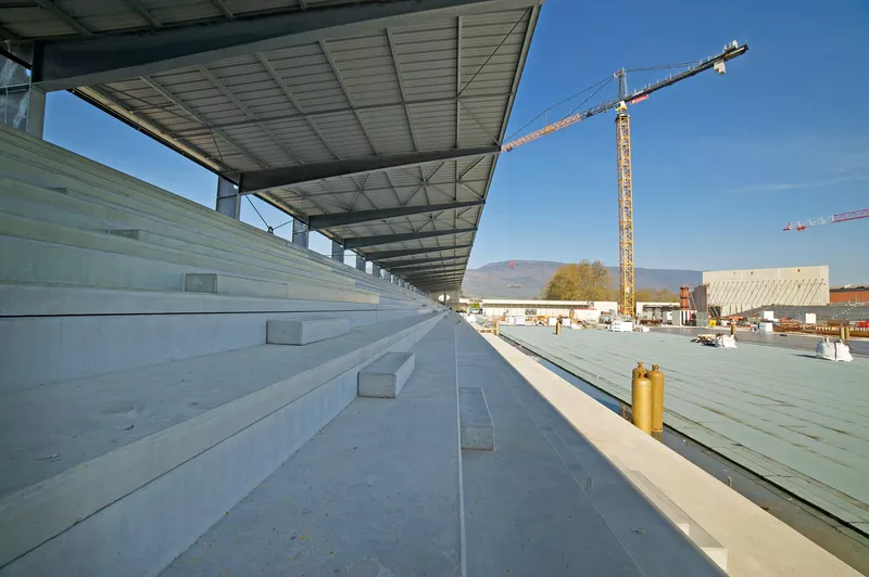 Le projet du Savoie Stadium consiste en la construction d’un stade multifonctionnel de 5 000 places, réalisé dans un environnement urbain très contraint. La proximité immédiate d’autres équipements publics a demandé une organisation des travaux particulièrement soignée, avec des interventions réalisées par étapes afin de limiter l’impact sur la circulation et le voisinage. Le chantier a également dû répondre à des exigences environnementales importantes, notamment pour la gestion des eaux pluviales et la limitation de l’espace occupé.