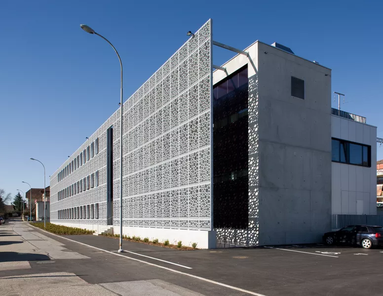 Préfabriquée et installée par Créabeton, la façade de l’usine Dress Your Body du Swatch Group à Cormondrèche se compose de 300 panneaux en BFUP Smart-Up. Cette résille ajourée à plus de 80 % forme une seconde peau légère et élégante, protégeant le bâtiment du rayonnement solaire tout en créant des jeux de lumière évolutifs au fil de la journée et des saisons.